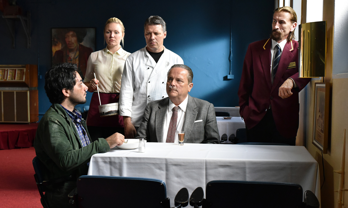 The bizarre restaurant, The Golden Pint, complete with stark décor, a sardine-heavy menu and a Jimi Hendrix poster, has just been bought by the gruffly deadpan Wikström (Sakari Kuosmanen). In need of a new life, Wikström has left both his wife and his job as a salesman selling shirts from the back of his magnificent classic car. After multiplying his earnings during a single night of poker, he’s now a restaurateur.