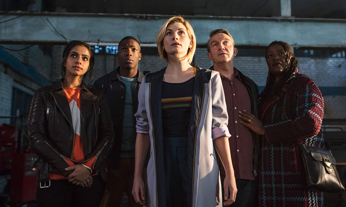 The Doctor (Jodie Whittaker, centre) with Grace (Sharon D. Clarke), Yasmin (Mandip Gill), Ryan (Tosin Cole) and Graham (Bradley Walsh). Photo: BBC