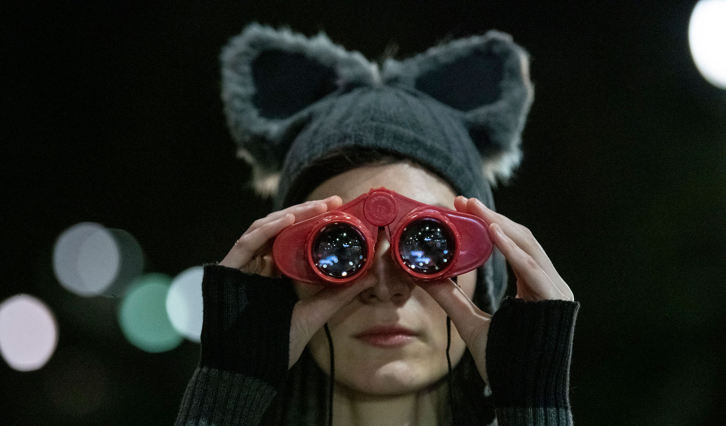 Their struggling anarchist bookshop and attached flat are being monitored by the police – both covertly and in the public realm. Exterior shots are pieced together from street CCTV, their private lives recorded by hidden cameras and footage lifted from personal mobile phones. Even Stevie’s home videos paying homage to his hero David Attenborough, complete with his delightful observations of “the human species in captivity”, make their way into the surveillance compilation. In this story, privacy is a myth.