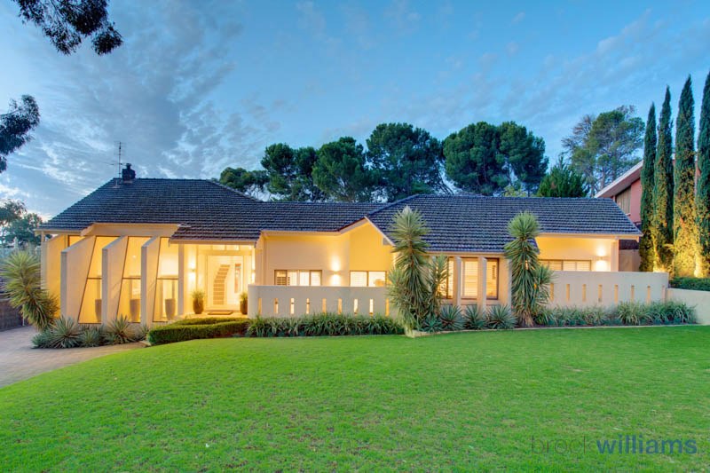 This five-bedroom architectural home is situated in the foothills of the Mount Lofty Ranges. It features an idyllic indoor pool with a bar, a sunken formal lounge with high ceilings and a dedicated wine storage area. There is a gas fire, full-width folding cafe doors and a large kitchen with beech cabinetry and stone bench tops. An outdoor kitchen area includes a pizza oven, gas plumbed barbeque, dishwasher, ice maker and wine fridges.