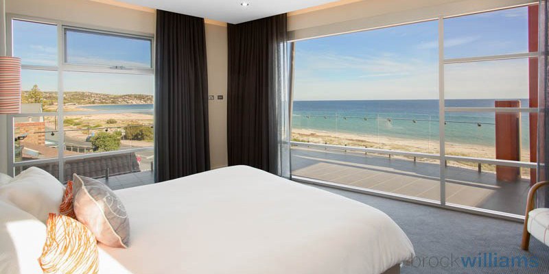 This beachside home boasts views from Brighton jetty to the hills of Seacliff. The house features open-plan living and dining areas and a designer kitchen. There are dual-level balconies and a family room overlooking the rear lawn and barbecue area. Also included is a 22,000-litre underground rainwater tank with an auto garden watering system.