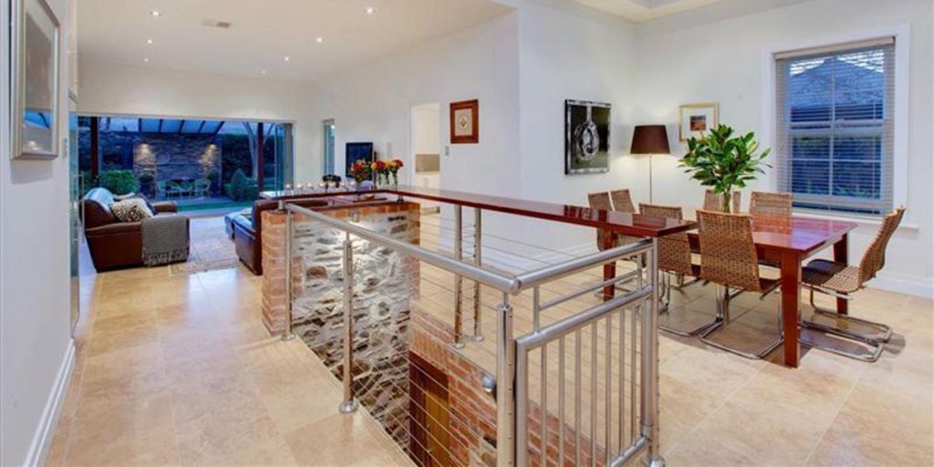 This bluestone residence in the eastern suburbs features high ornate ceilings, a hall archway, timber and marble floors, and open fireplaces. It has a fully equipped kitchen, two bathrooms, a dining area, cellar/tasting room and open-plan living space. The living area opens out to a Japanese-influenced garden with a hand-built stone fireplace and entertaining deck.
