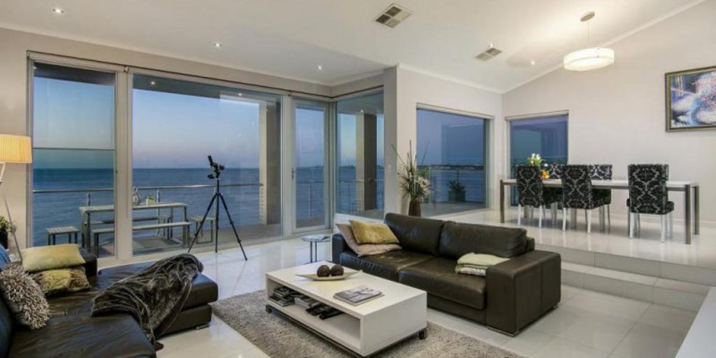 This linear, architecturally designed house has spectacular ocean views. The residence has three large bedrooms, including two with walk-in robes. The large master bedroom features a separate balcony. There is also a sunken lounge, a modern kitchen and a home theatre.