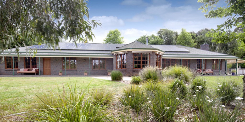 This country home is situated on nearly 9ha of land. The property includes grazing paddocks, a bore, dam, stock troughs, rainwater tanks, quality fencing and shedding, a rumpus room and a “teenagers’ retreat”. The house has a formal lounge, spacious kitchen and dining area, a large family room and three bedrooms. Other features include a ducted vacuum system, built-in robes, timber ceilings, stained-glass windows, a combustion heater, reverse-cycle air-conditioning, external blinds and solar panels.