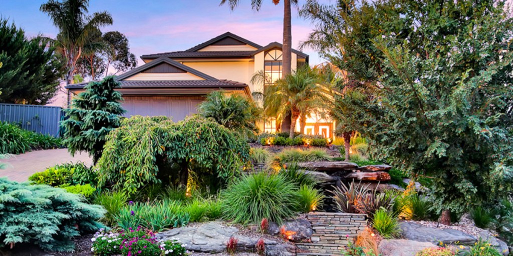 This large two-storey home comes with a pool and a tennis court. It includes four bedrooms, three bathrooms and a study. The formal living area features a fireplace and an elegant staircase, while the informal living area has a kitchen with stainless-steel European appliances and stone bench.