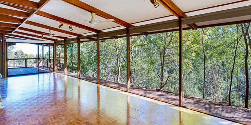 The inside of this stone and timber 1970s house is strongly connected with the outdoors through large, floor-to-ceiling windows. Set on more than three-and-a-half hectares of native vegetation and vineyards, the house has an open-plan living area downstairs featuring parquetry timber flooring and expansive picture windows. The master bedroom upstairs has a walk-in robe and en suite, while a separate study leads onto a decked area featuring an in-ground, gas-heated spa.