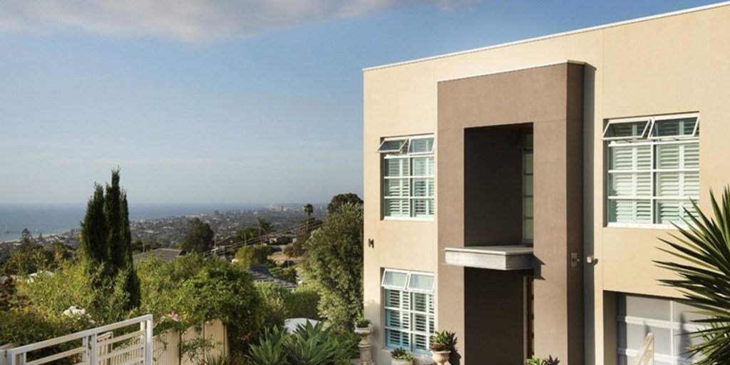 This large modern home has impressive city and coastal views. It features a downstairs theatre room with surround sound and a built-in wet bar. There is a wraparound tiled and timber-decked entertaining area with a swimming pool and spa.