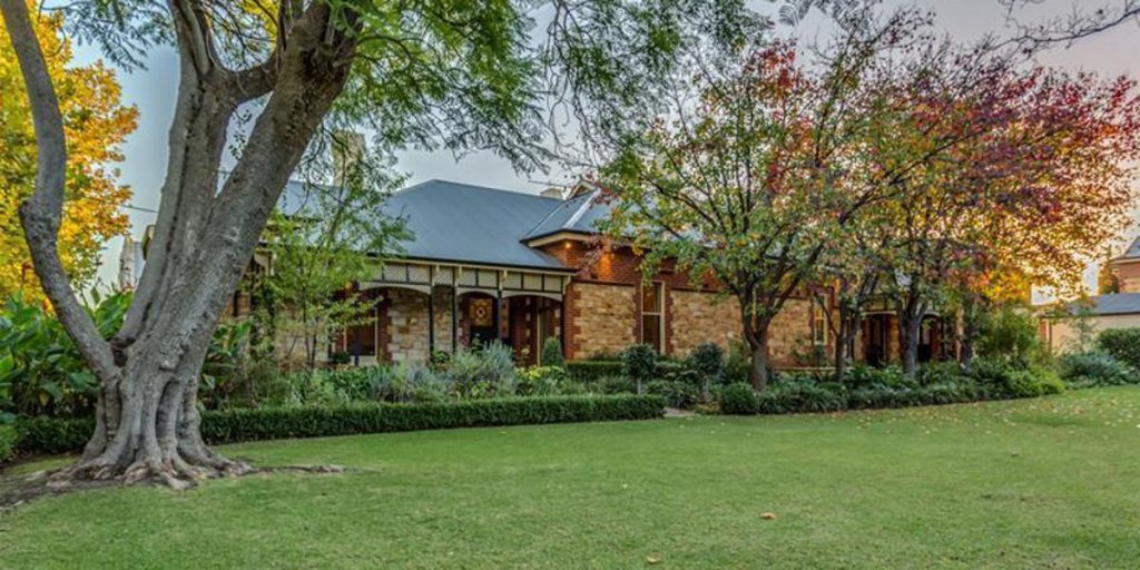 This return-verandah villa has up to 11 main rooms. It features new upgrades consistent with the original architecture, including marble fireplaces and matched skirtings, architraves and cornices. Outdoors, a former tennis court has been turned into an open space with lawn surrounded by trees and manicured garden beds, plus there’s an in-ground pool and spa.