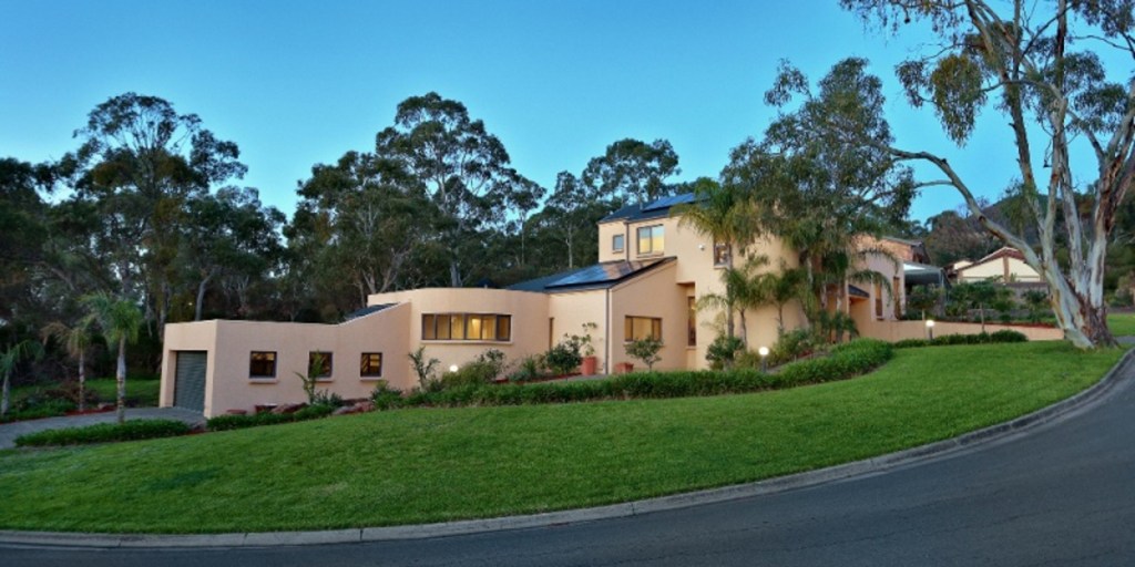 This architect-designed residence is set on nearly 1000sqm of land. It includes a spacious master bedroom with a walk-in robe and an en suite with double vanities. The lower level has slate tiled floors and a large, modern kitchen. An outdoor living area features a three-tier waterfall and a pond, shade sails covering the paved alfresco area and a tropical garden.