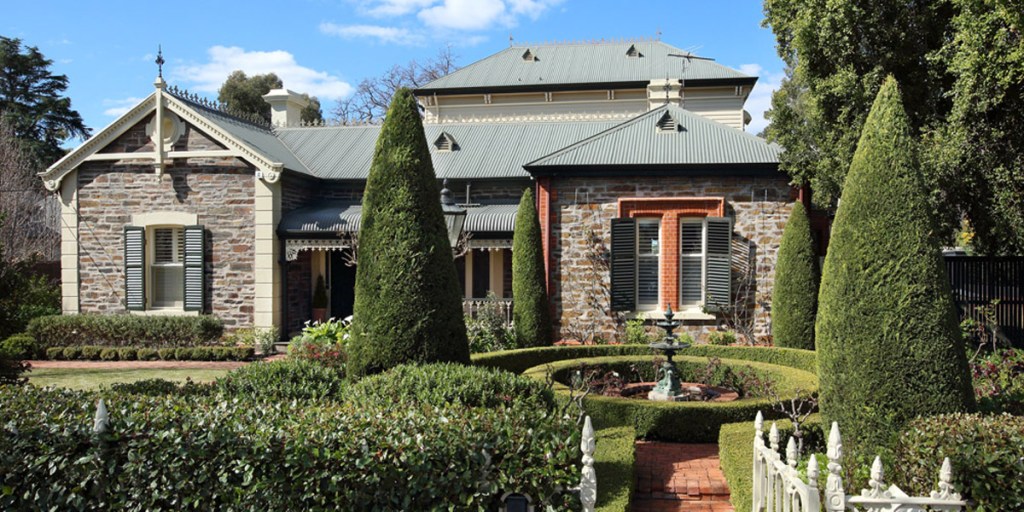 This late 1800s bluestone villa features three living areas, three bathrooms and up to six double bedrooms. It includes a kitchen – in the French provincial style – a cellar, swimming pool, tennis court and garage for four cars.