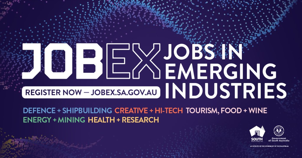 JOBEX will also provide opportunities to hear from industry thought leaders, who will share their vision and insights for shaping South Australia’s future, and people can also learn more about the state government services available for entrepreneurs, graduates, apprentices and trainees, as well as job seekers.
