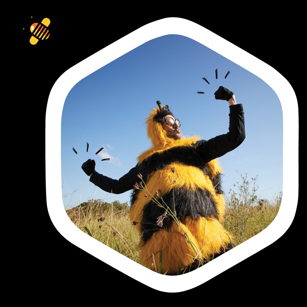 We went to nectr’s Instagram page to find the first appearance of the human bee (which doesn’t have a name as far as we can tell!).